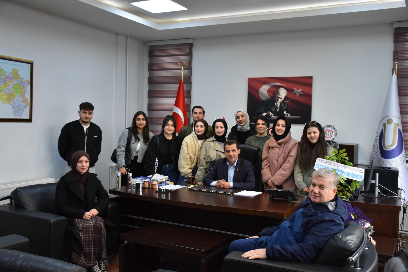 Fakültemiz Siyaset Bilimi ve Kamu Yönetimi Bölümü 1. sınıf öğrencileri, Fakültemiz Dekanı Prof. Dr. Cemal ÖZTÜRK’ü makamında ziyaret etti.