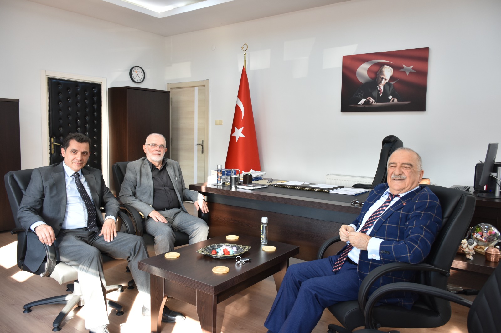 Ünye Kültür ve Eğitim Derneği (ÜNKED) Başkanı Reşit EROL ile Ünye Eski Belediye Başkanı Osman YURT, Fakültemiz Dekanı Prof. Dr. Cemal ÖZTÜRK’e tebrik ziyaretinde bulundu.
